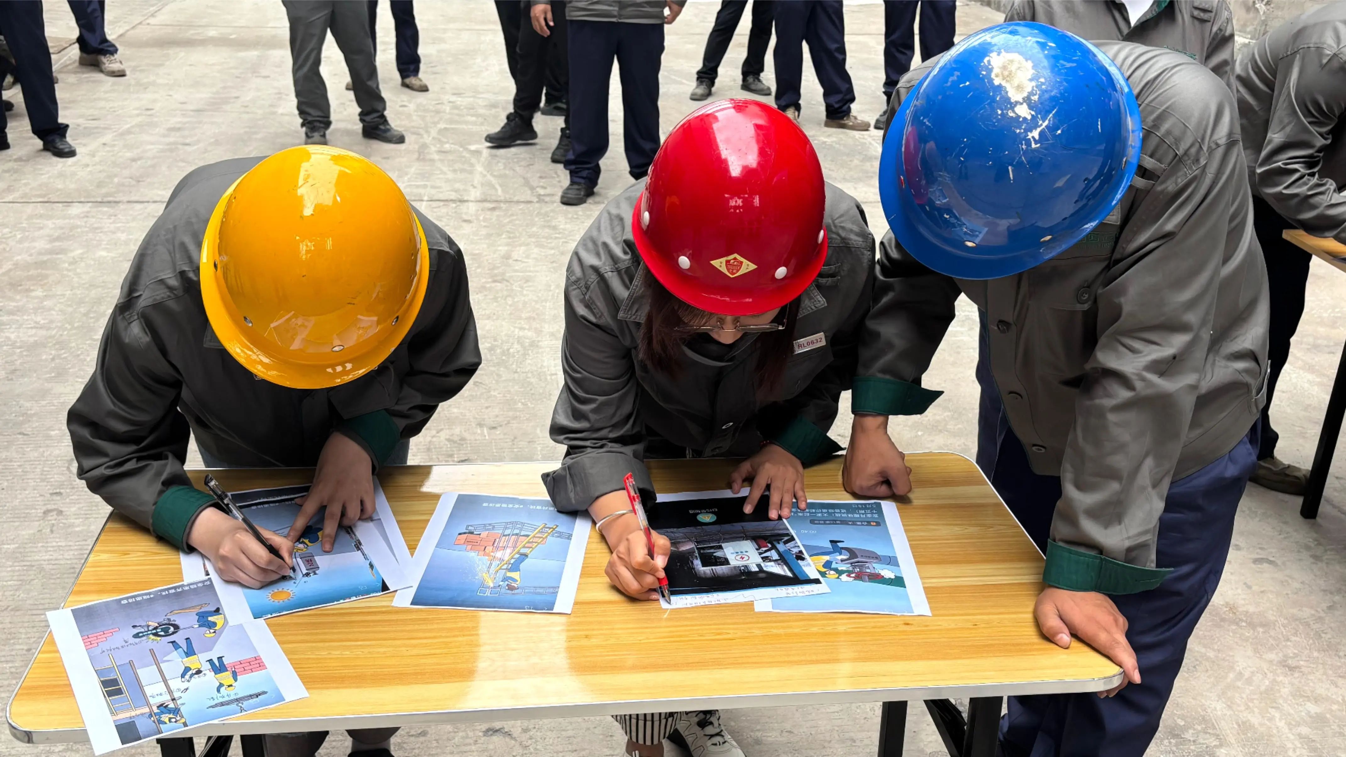 安全隱患找茬環(huán)節(jié),通過場景模擬引導(dǎo)員工快速識別潛在風(fēng)險(xiǎn);標(biāo)志辨識項(xiàng)目以廠區(qū)、交通常見安全標(biāo)識為內(nèi)容,強(qiáng)化風(fēng)險(xiǎn)預(yù)判能力;消防服穿戴與五點(diǎn)式安全帶操作則聚焦實(shí)操技能,嚴(yán)格規(guī)范穿戴步驟與安全要點(diǎn)。競賽采用單項(xiàng)計(jì)分制,各環(huán)節(jié)結(jié)束后按小組總分決出優(yōu)勝。