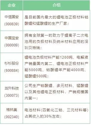 電池上游重點企業(yè)