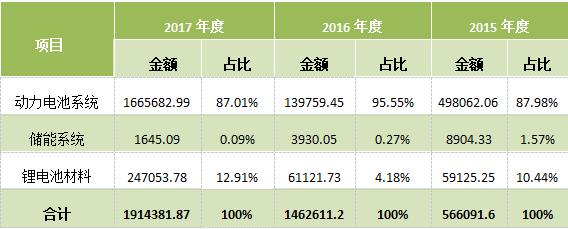 公司主營業(yè)務收入來自動力電池系統(tǒng)、儲能系統(tǒng)和鋰電池材料的銷售,具體情況如下: