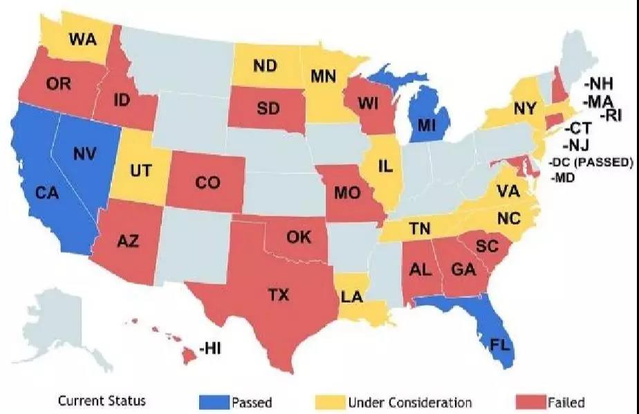 隨著無人駕駛技術(shù)的不斷發(fā)展演進,對無人駕駛的立法變得十分重要。截至2015年,美國已經(jīng)有16個州啟動無人駕駛立法;截至2014 年是12個州,截至2013年是9個州,截至2012年是6個州。Nevada 在2011年授權(quán)無人駕駛車的運營,是全美第一個授權(quán)無人駕駛的州。之后,California,F(xiàn)lorida,Michigan,North Dakota,Tennessee和 Washington D.C 針對無人駕駛通過了相關的法案。Arizona州長簽署了無人駕駛的行政命令。
