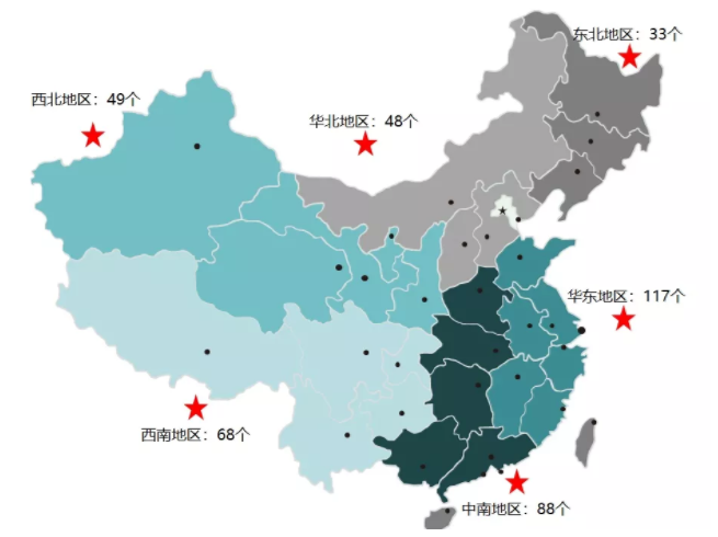 從各區(qū)域的特色小鎮(zhèn)數(shù)量來看,華東地區(qū)的數(shù)量是最多的,有117個(gè),其中浙江省數(shù)量最多,為23個(gè)。浙江省從2014年開始全面啟動(dòng)特色小鎮(zhèn)培育工作,目前已經(jīng)取得了矚目的成績。小鎮(zhèn)數(shù)量并列第二的是江蘇和山東,擁有22個(gè)特色小鎮(zhèn)。