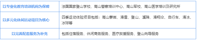 (2)沙木尼擁有完善的休閑產(chǎn)業(yè)鏈配套。向?qū)Х?wù)上,專業(yè)的向?qū)Ч緭碛谐^150名注冊職業(yè)登山向?qū)?,能為游客提供沙木尼地區(qū)的全方位攀登、滑雪服務(wù);住宿服務(wù)上,星級(jí)酒店、青年旅舍、家庭旅館、公寓、露營營地共有50余家,并有房屋租賃、度假中心等物業(yè)接待服務(wù)。商業(yè)服務(wù)上,共有登山、滑雪及紀(jì)念品等40余家體育用品商店,有提供沙木尼傳統(tǒng)美食和西式休閑美食的餐飲娛樂服務(wù);醫(yī)療服務(wù)上,形成“急診+醫(yī)院+研究中心”的綜合醫(yī)療服務(wù)體系,如:夏蒙尼醫(yī)院、高原生態(tài)系統(tǒng)研究中心、山地醫(yī)學(xué)培訓(xùn)與研究所;觀光交通上,纜車道于1955年正式啟用,將海拔1035米的沙木尼和海拔3842米的南針峰連接起來,不但可使游客領(lǐng)略到冰雪風(fēng)景,更為登山者和滑雪者帶來了極大便捷。