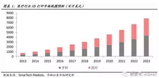根據(jù)SmarTech《牙科3D打印2015:一個十年的機(jī)會預(yù)測與分析》中的預(yù)測,3D打印技術(shù)在牙科領(lǐng)域的市場規(guī)模到2016年會達(dá)到20億美元,2020年銷售規(guī)??缮仙?1億美元。