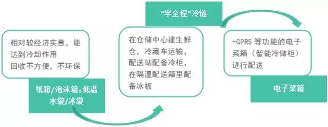 目前國內(nèi)有三種冷鏈配送方式,占比最大的是第一種。相比國外的冷鏈配送,中國冷鏈配送還不夠完善,也非真正的全程冷鏈,容易造成生鮮的損耗高的問題,用戶體驗(yàn)差,冷鏈配送未來擁有較大完善空間。
